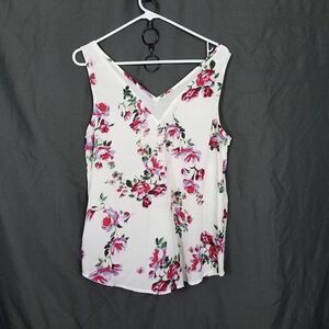 Maurices Medium V Neck White Floral Blouse Sleeveless Polyester Feminine Size M