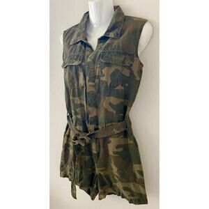 BLANKNYC Camouflage Short Jumpsuit Sleeveless Romper Belted Waist Linen Blend XS