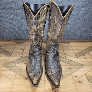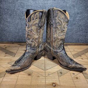 Stetson Women's 8.5 Black Brown Leather Studded Distressed Western Boots