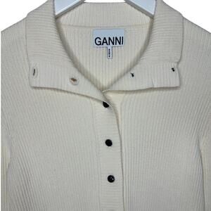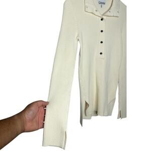 Ganni Beige Ribbed Rayon Long Sleeve Thick Turtleneck Sweater Top Size Medium