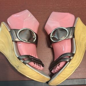 Experience the perfect blend of style and comfort with these Onex sandals. Featuring wide metallic straps and an open toe design, these sandals are ideal for casual outings. The textured footbed ensures a comfortable grip, making them a must-have for your footwear collection. Color is a pewter bronze.