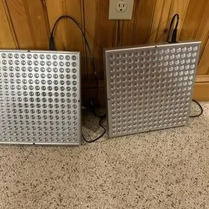 Bright LED grow light panels. Ideal for indoor gardening. Features vibrant red and blue lights.