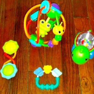An assortment of toys for your little one! battery powered toys, teething toys, music toys crinkle toys, pictures for more detail.