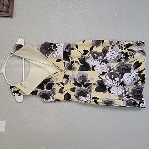 Embrace elegance with this stunning sleeveless dress featuring a beautiful floral pattern. The yellow and black design adds a touch of sophistication to your wardrobe. Perfect for any occasion.