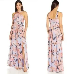 Adrianna Papell Womens Maxi Dress 6 Floral Chiffon Formal Gown Wedding Guest
