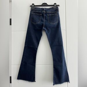 Rag & Bone women's 10 inch crop flare blue jeans. Size 24, color dune. Raw hem. Great pre owned condition. Waist 13” across. Inseam about 25”. Rise 10”.