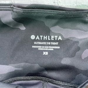 Athleta brand size xsmall grey and green camo ultimate 7/8 tight style leggings with key pocket in back of waistband