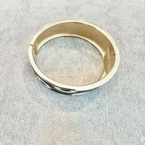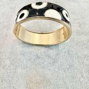 Vintage Gold Tone With Black And White Circle Design Hinge Bangle Bracelet