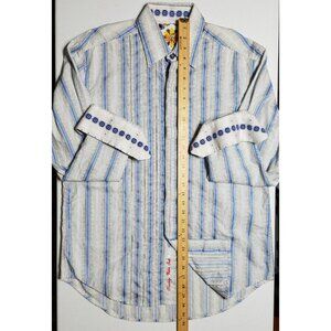 Robert Graham Long Sleeve Button Up White/Blue Striped Flip Cuff Shirt Men's L