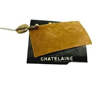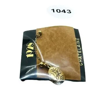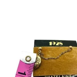 Chatelaine Locket Brooch Pin Vintage 1928 Womens Gold Tone Round Link Chain Mini