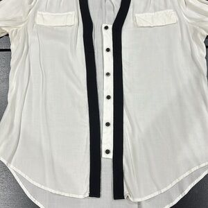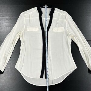 Express White Long Sleeve Button Up Shirt with Bold Black Trim - M