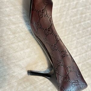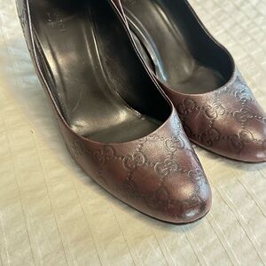 Lightly worn Gucci Guccissimi Chocolate Brown Leather Embossed Heel.