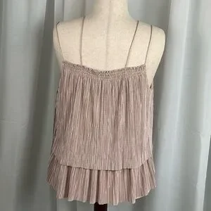 Cute nude/tan layered tank top. Flowy and comfortable. Brand is Tahari by Arthur Levine.