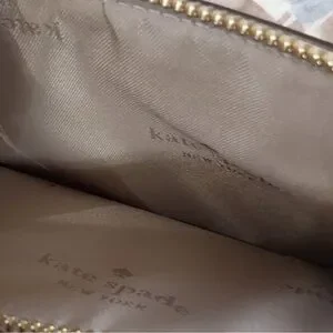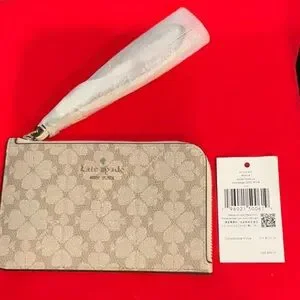 NWT Kate Spade Lucy Flower L-Zip wristlet is a petite accessory and has space for cash, cards or maybe even your lipstick. This beautiful wristlet features a zip closure, a metal pin mount with Spade logo and a two way script logo lining. Please see all photos.