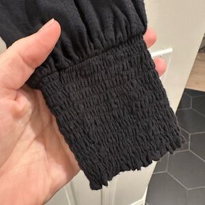 Nation LTD Tabitha Smocked V Neck Long Sleeve Tee Black M