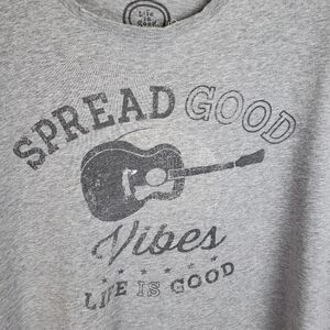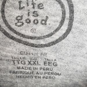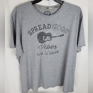 Life is Good Gray "Spread Good Vibes" T-shirt with Distressed Collar Sz 2XL