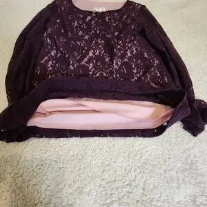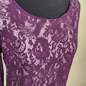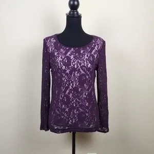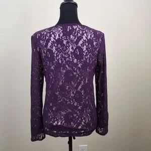 Victor Costa Occasion Long Sleeve Lace Blouse Top Deep Purple Size Medium
