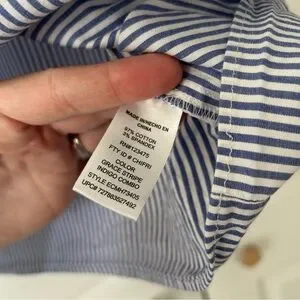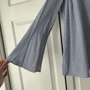 Elevate your wardrobe with this stylish striped blue top. Perfect for any occasion, this top offers both comfort and elegance. Excellent condition!
