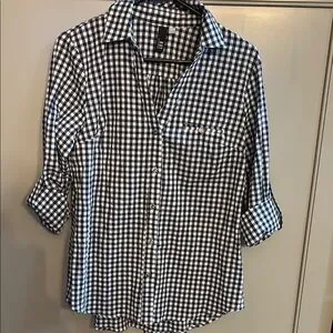 Kut From The Kloth Navy Gingham Print Button-up Roll Tab Sleeve Shirt sm