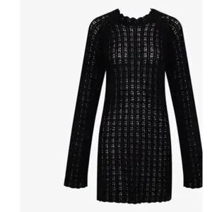 This black pointelle knit sweater dress is giving the best kind of seventies energy. We would recommend using this with a slip underneath or as a coverup since this is semi sheer.