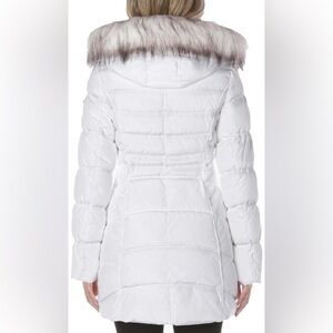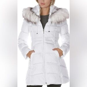 NWT Laundry By Shelli Segal White Puffer Coat with Fur Trim Hood