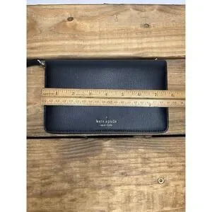 Kate Spade Darcy Large Slim Bifold Wallet Clutch Wristlet Black Light Blue