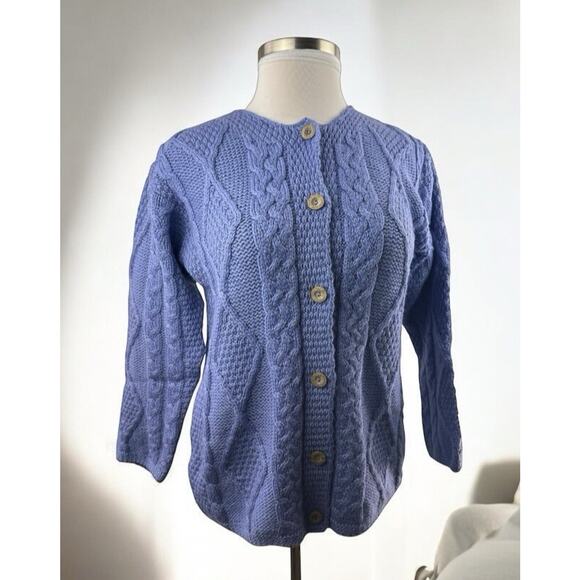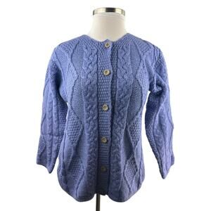 Connemara Knitwear Chunky Cable Knit Ireland Cardigan Sweater Purple Size Small