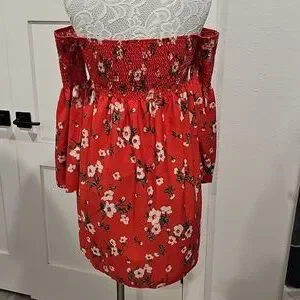 Shein floral bell sleeve rushed bust mini dress. Size M