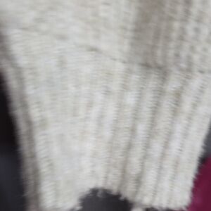 Embrace the cozy charm of this Topshop sweater, featuring a chunky knit texture and a ribbed turtleneck collar. The cream with hints of gray color and balloon-style sleeves add a touch of elegance, making it a versatile choice for your fall and winter wardrobe. Minor pilliness on sleeve hems, see pics. Pre-owned, overall very good condition.