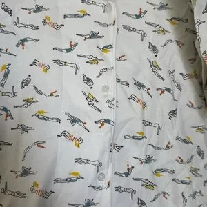Ro’s Garden 100% pina cotton shortsleeve and shorts PJ set, swimmers/divers, size Large (purchased from Sara Cambell, never worn)
