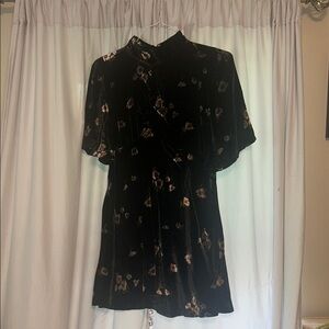 Elegant black velvet dress with a charming floral pattern. Perfect for any occasion.