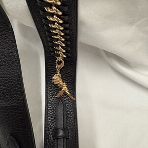 It’s a beautiful black pebbled leather with a gold chain braided through and the gold removable Rexy charm on the loop.