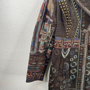 Pamela McCoy Coat Women's Brown Sz M Embroidered Studded Boho Ecletic Mid Length