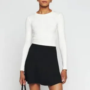 BEST NWT Reformation Flounce Mini Skirt - Black Classic Flare Casual