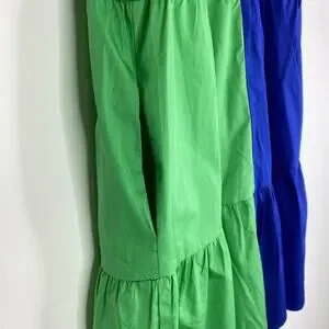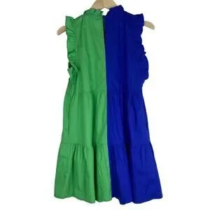 THML Colorblock Shift Dress Womens S Blue Green Pockets Tiered Layers Ruffles