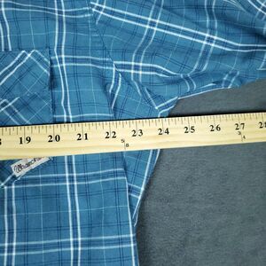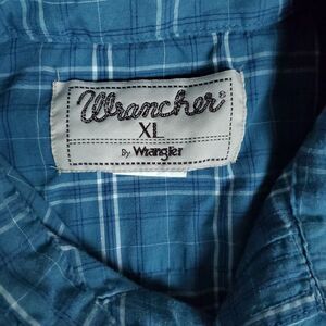 Vintage Wrangler Wrancher Mens XL Blue Plaid Snap Pearl Western Shirt