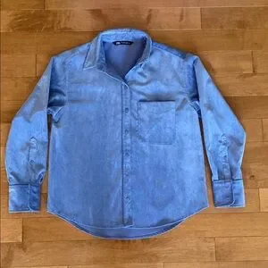 Zara Blue Corduroy Button Up Shirt size S! In excellent condition, worn 2 times!