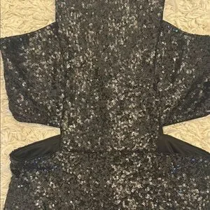 Shine in this elegant black sequin dress, perfect for any special occasion. The sleek design offers a flattering fit, making it a must-have for your wardrobe. Cut out.. NWOT