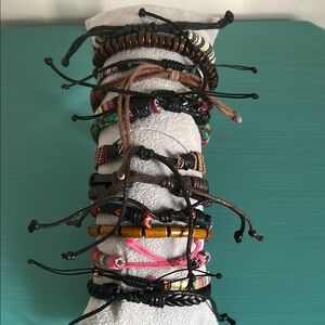 New without tags and excellent preloved condition - Multicolor Wood Bead Woven Vegan Leather Bohemian Bracelets 13 Piece Set