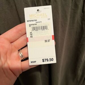 Brand new with tags. XS - doesn’t look green compared to my wall but it’s an army green color.