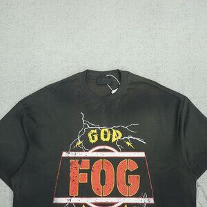 Retro-style prints such as "GOD FOG DIVINITY 1977" on the front