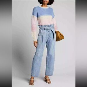These are reimagined '90s jeans with a belted paperbag waist, lowered belt loops and pleat detailing. They're made with non-stretch, 100% cotton in a vintage-inspired light indigo wash.