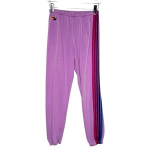 Aviator Nation M Womens 5 Stripe Sweatpants Neon Purple Pink Rainbow