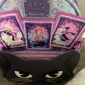 Enchanting Loungefly backpack in purple with playful cat design. Glows in the dark Hocus Pocus Two side pockets. Disney