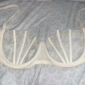 Size 38d us size. Creamy color. Beautiful lace. Euc except for the tag having a mark .