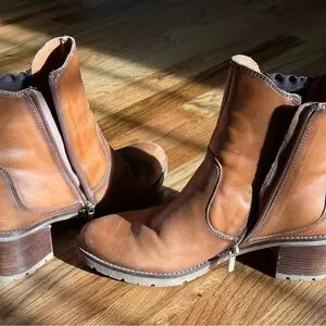 Crafted from rich brown leather, these PIKOLINOS ankle boots feature a sophisticated Chelsea-style design with side elastic panels and a convenient side zipper closure. The chunky heel and rugged rubber sole provide both style and stability, making them perfect for any occasion.