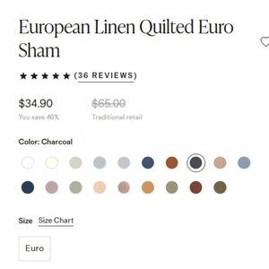 Quince European Linen Quilted Euro Sham Charcoal 5⭐Customer Reviews 26x26