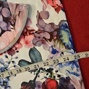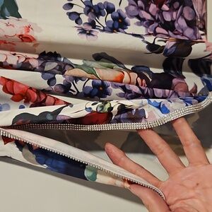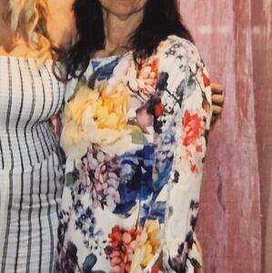 •Beautiful floral top with clear rhinestones, rimmed around the neck & down the sleeve, and the sleeve has a very cool opening....