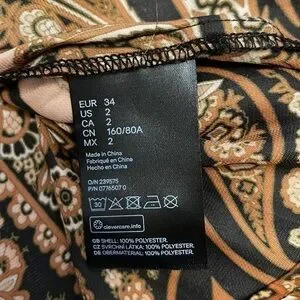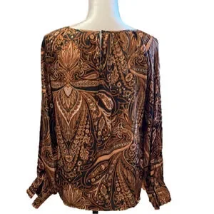 Women’s size 2 Paisley blouse with a peep hole and button back long sleeves with two buttons. Used but great condition.