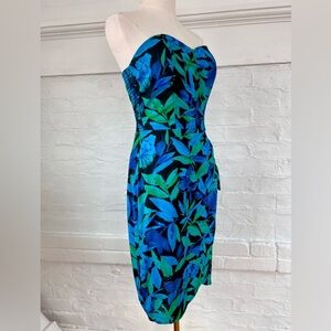 Vintage Byers Too 80’s Floral Strapless Dress Sweetheart Corset Tulip Side Tie